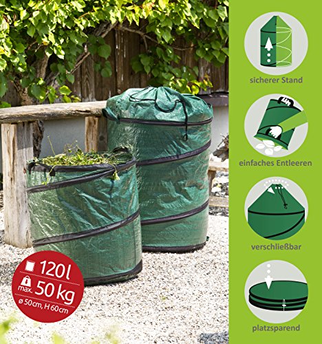 Specificaties: Tuinzak, pop-up bladzak, zelfopstellend, springzak, 120 l, afsluitbaar met trekkoord, opvouwbaar, groen, 50 x 50 x 60 cm…