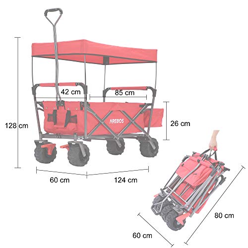 Specificaties: Arebos Bolderkar | opvouwbaar met dak | handwagen | inklapbaar | gereedschapswagen | rood