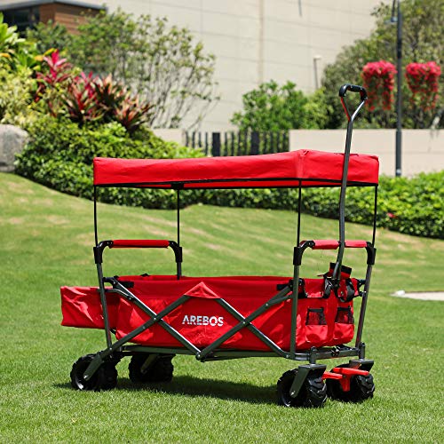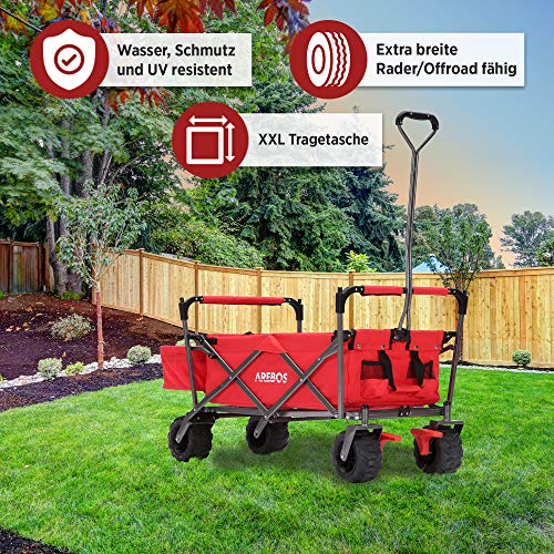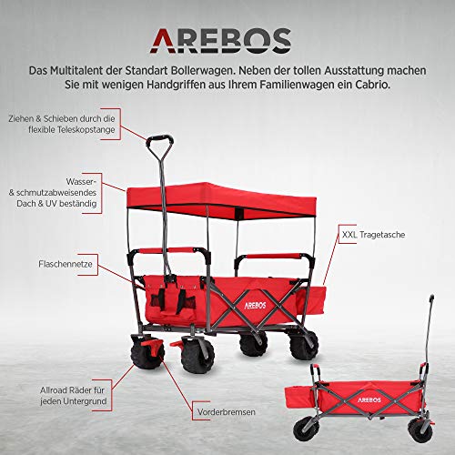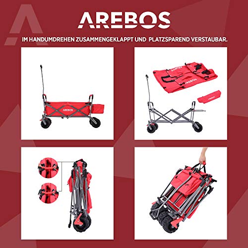Arebos Bolderkar | opvouwbaar met dak | handwagen | inklapbaar | gereedschapswagen | rood