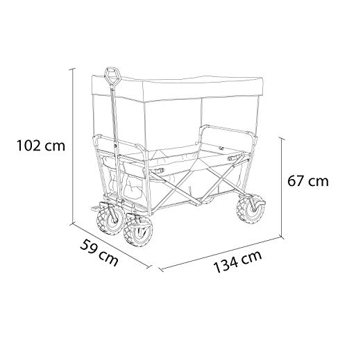 VEELZIJDIGE BOLDERWAGEN: Onze bolderwagen AB200 is dé oplossing wanneer je een extra handje nodig hebt. Deze handige bolderkar helpt je bijvoorbeeld bij het vervoeren van je boodschappen. In het ruime achtervak kun je nog meer spullen kwijt. Ideaal voor een picknick met de familie of tijdens een dagje naar het strand! Het afneembare dak biedt schaduw op warme zomerdagen.