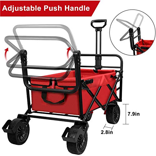 Grote capaciteit: Grote belasting vouwwagen kar buitenafmetingen ca. 49,2 “Lx22.6″Wx31.5″H. De inklapbare utility wagon kar binnenmaat is 33,5 “Lx20″Wx10.6″H. Grond naar de bovenkant van het handvat is 31,55”. Twee bekers in de stoffen bekerhouders zijn niet inbegrepen.