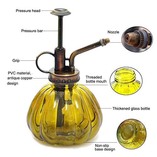Specificaties: Bemodst® 1 Pc Glas Gieter Pot Vintage Plant Mister Messing Druk Spuit Retro Pompoen Spray Fles Antiek Koperen Sprinkler…