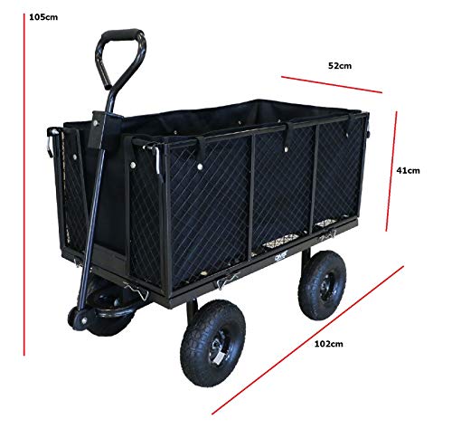 Specificaties: DMS Bolderkar, transportwagen, tuinwagen, gereedschapswagen, handwagen, luchtbanden, profielwielen, zwart