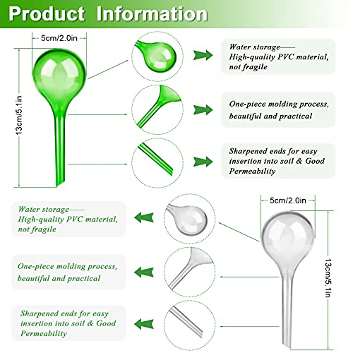 Gezonde planten kweken – Deze set van 12 decoratieve PVC waterbollen is een perfect automatisch watersysteem voor uw kleine binnen- of buitenplanten. Niet meer over of onder water geven van je planten! Zelfbesproeiende bollen geven langzaam de perfecte hoeveelheid water af die nodig is in de grond om bloemen, kruiden en andere planten te voeden.