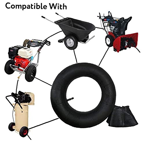 Deze binnenbuizen zijn compatibel met een breed scala aan apparatuur: kruiwagens, grasmaaiers, tractoren, handvrachtwagens, tuin, nut, platte karren, werfaanhangwagens, dollies, trolleys, wagens, generatoren, sneeuwblazers, perssure ringen, luchtcompressoren, houtversnipperaars en meer.U hoeft geen nieuwe band te kopen als u een vlak, gewoon de buis vervangen.