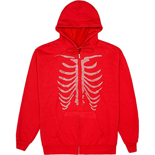 Specificaties: Oversized hoodie met ritssluiting voor vrouwen Y2k gothic skeletprint pullover vest jas met zak