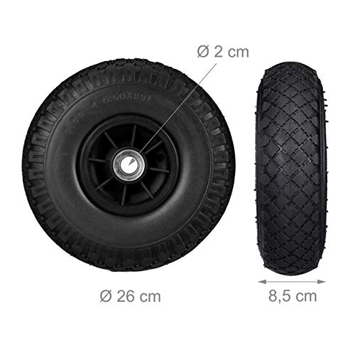 Relaxdays 2 x steekwagenwiel, lekvrije massief rubberen banden, 3,00-4 inch, 20 mm as, tot 80 kg, 260 x 85 mm, zwart