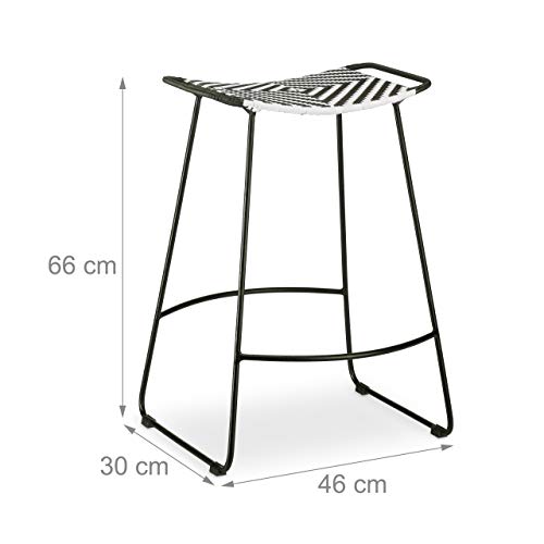 Specificaties: Relaxdays Polyrotan kruk, geruite tuinkruk, zitkruk HBT 66 x 46 x 30 cm, zwart-wit