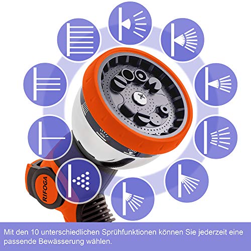 RIFOGA Tuinsproeier, tuinhanddouche, premium 10 functies, tuinspuitpistool voor alle gangbare tuinslangsystemen…