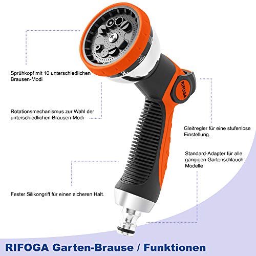 Specificaties: RIFOGA Tuinsproeier, tuinhanddouche, premium 10 functies, tuinspuitpistool voor alle gangbare tuinslangsystemen…