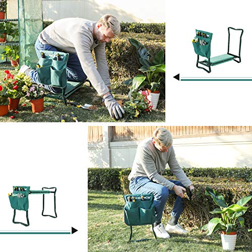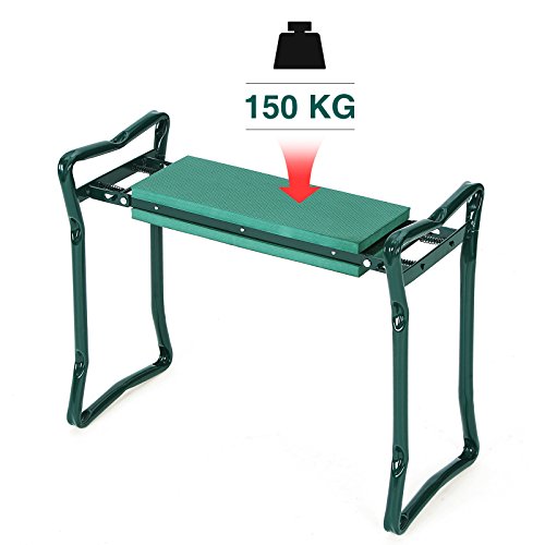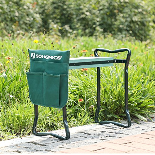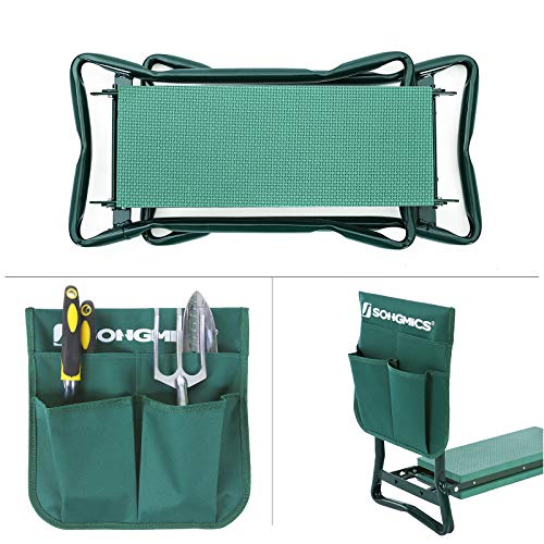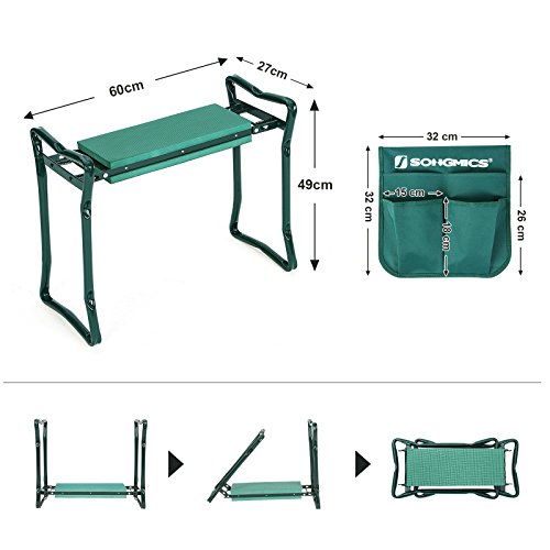 Songmics GGK01G Kniebank 60 x 49 x 27 cm tuinbank kruk zitkussen Eva-schuimkussen stalen buis groen