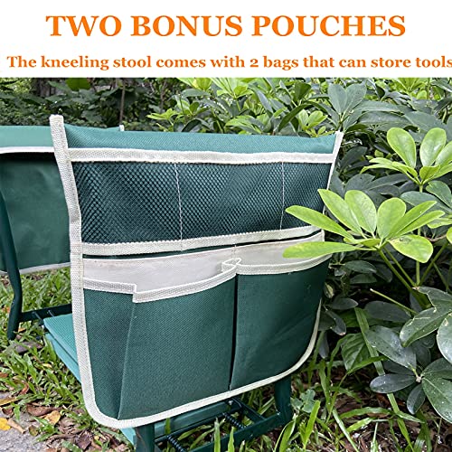 ❤ 【Veilige sterke leuningen & twee gereedschapstas】 Zijleuningen maken het staan en zitten gemakkelijker door stevige ondersteuning te bieden, vermindert de druk op je knieën en onderrug; tuinieren kniebeschermers kruk wordt geleverd met een polyester stoffen gereedschapstas om de meeste tuingereedschap vast te houden. Als je de gereedschapskit ophangt naast de Kneeler Folding Seat Kruk met handgrepen kan de efficiëntie verbeteren, heb je altijd de gereedschappen die je nodig hebt dicht bij de hand.
