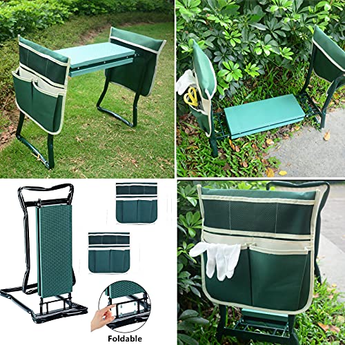 ❤ 【Eenvoudig opvouwbaar en draagbaar tuingereedschap 】 Tuinknieler met gereedschapstas is robuust en opvouwbaar, gewoon het veermechanisme indrukken en de benen naar beneden vouwen; (Eén hand moet de veermechanisme bar in het midden trekken om het opgevouwen te maken, waardoor minimale opslagruimte mogelijk is) Dimension L 23 bij W 11 inch na vouwen.Tuinknieler stoel met gereedschap zijzakje helpt je tuingereedschap in de buurt te houden.
