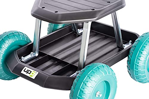 UPP – Sedile a rotelle da Giardino con Portata Fino a 130 kg, z półką na małe narzędzia ogrodowe, wysokość siedziska 33…