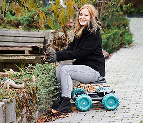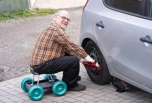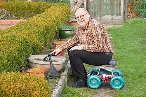 ✅ Universeel: tuinwagen voor verschillende toepassingen met aangename zithoogte van 33 cm. Of het nu in de tuin is bij het beplanten van groente- of bloembedden, bij het onkruid wieden, omheining verven of bij het onderhoud van de auto. Een echte hulp voor tuin, huishouden en werkplaats