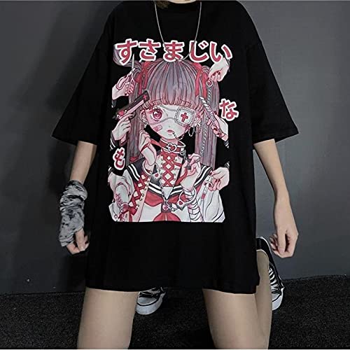 Specificaties: Vocha Damen goth T-Shirt schulsachen kawaii tshirt aesthetic clothes vintage Sommer japan harajuku Tops e-girl klamotten…