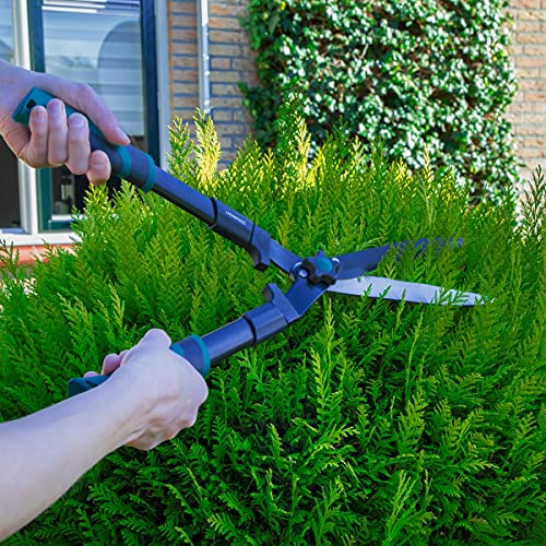 Heggenschaar: 57 cm totale lengte met 22,9 cm lange messen met gekartelde rand. Geschikt voor het snijden van een heg, een struik of een struik met een maximale takdiameter van 6 mm.
