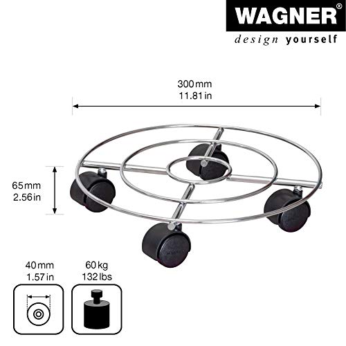 WAGNER Plantentrolley CHROME Ø 30 x 6,5 cm I Plantentrolley voor binnen I Bloementrolley van verchroomd staal I Blinkend…