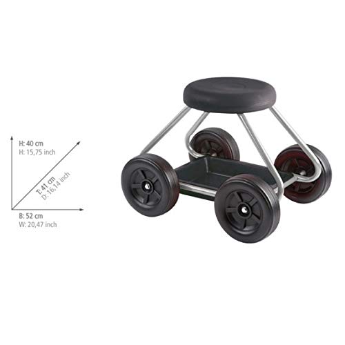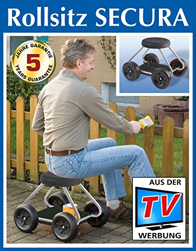 Ook ideaal is de plank onder de zitting: Daar kunnen verschillende werkgerei vakkundig worden geplaatst. Het rolzitje Secura is gemaakt van stevige stalen buis met soepel lopende kunststof wielen. Veelzijdig inzetbaar en perfect aan elke wens instelbaar, een must voor elke hobbytuinder.