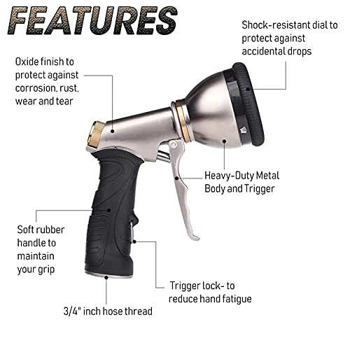 Specificaties: YUDICP Tuinhanddouche, metalen tuinspuitpistool voor tuinslang, 9 sproeipatronen, tuinirrigatie, tuinspuit, geschikt…