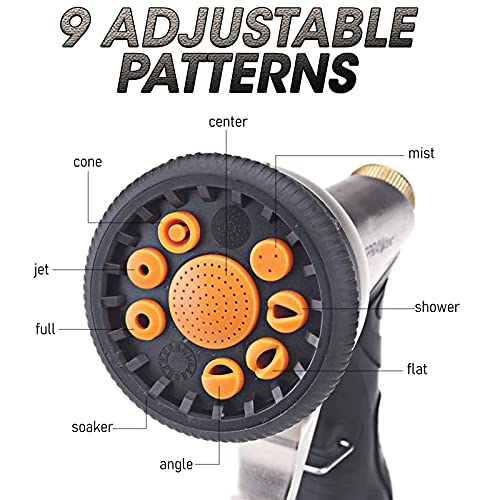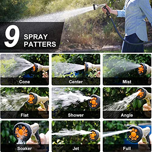 ????【Multifunctionele 9 spuitmonden】 Voldoet aan al je irrigatie- en reinigingsbehoeften. 360° draaibare sproeier en 9 modi naar keuze: Jet / Flat / Mist / Cone / Shower / Center / Soaker / Rinse / Full, bieden een groot aantal waterdruk voor het bewateren van planten en gazon, wassen van auto’s, honden of andere huisdieren, het reinigen van ramen, trottoirs, oprit, enz.