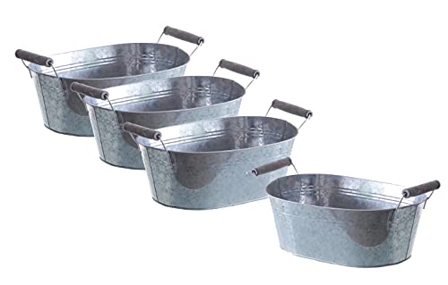 Zinken plantenbakken in set van 4, elk 33,5 cm – ovaal met handgrepen – kruidenpot decoratieve bloembak