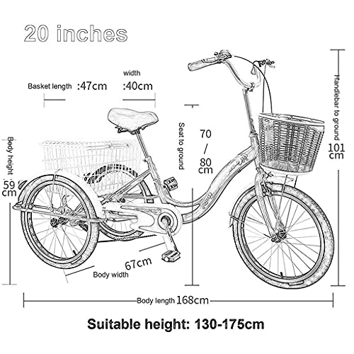 Specificaties: ZJZ Driewielige fiets 20 Inch Trike Fiets Verstelbare Rugleuning Seat 3-wiel Fiets Cargo Mand Voor Heren Dames